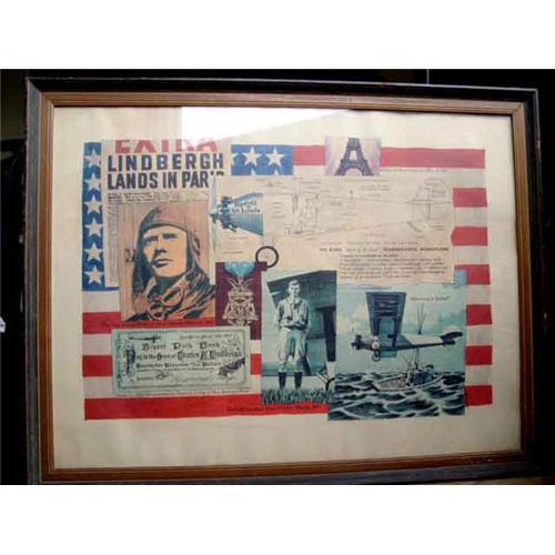 Charles Lindbergh Long Island to Paris 1927 Print with a United States flag backdrop, in a magohany frame. REF# PT_028