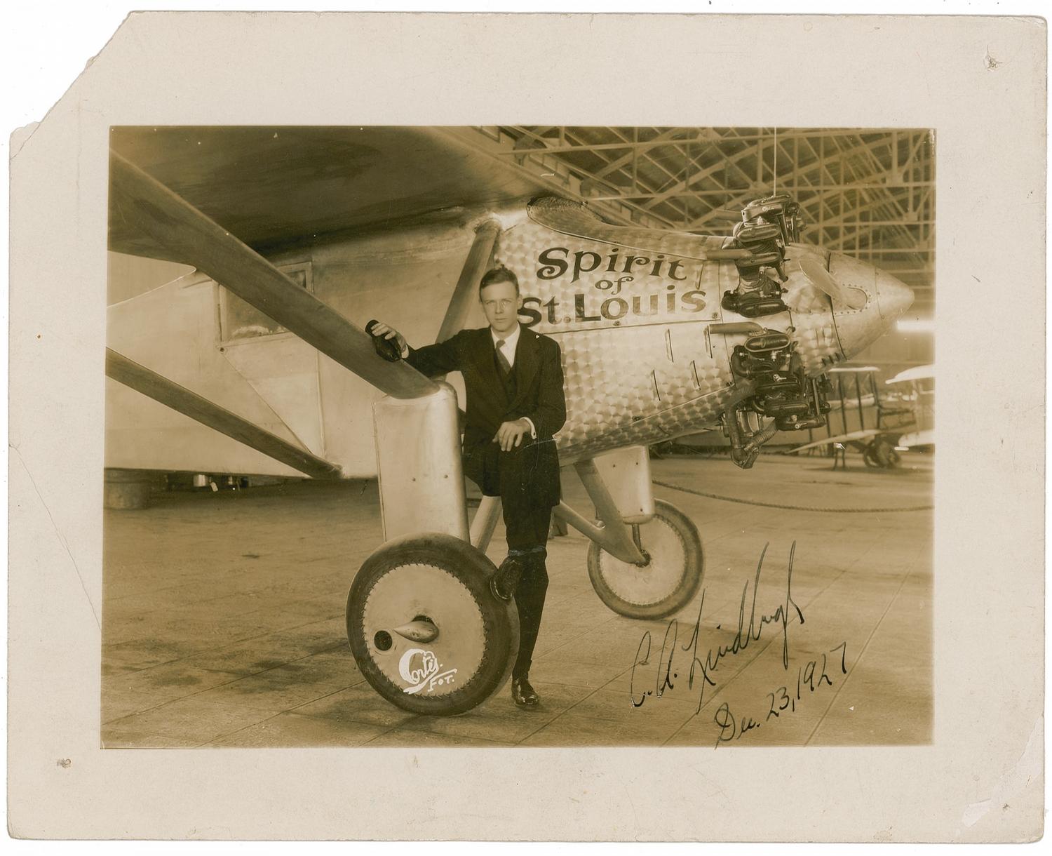 Noted Lindbergh historian Barry Friedman states that this became one of the most critical picture days in Charles Lindbergh history, capturing the aviator in uncharacteristically formal attire, yet posing in such a casual manner, with his foot propped on the tire of his plane. Undoubtedly, one of the finest photos of Lindbergh and the Spirit of St. Louis in existence.