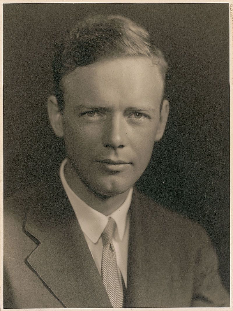 Youthful vintage matte-finish 7.5 x 9.75 portrait of Lindbergh in a suit and tie, affixed to a same-size mount. In fine condition.