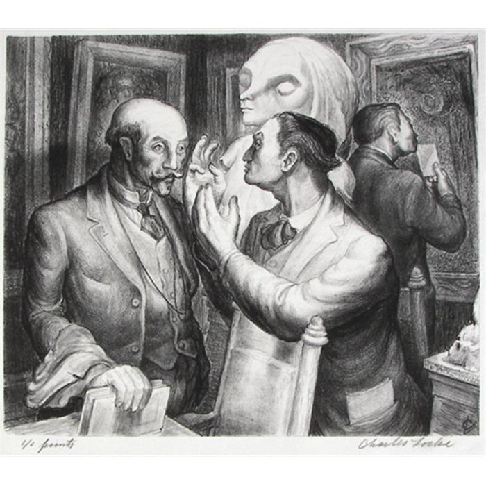Charles Locke (1899-1983) Broadmoor Art Academy Lithograph, "The Gallery", 1931 9 1/2" x 11" Pencil Signed