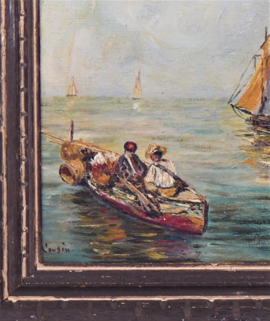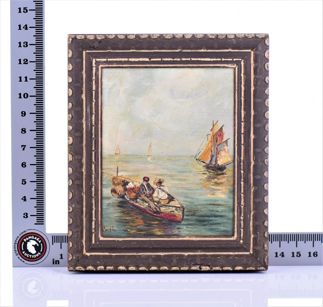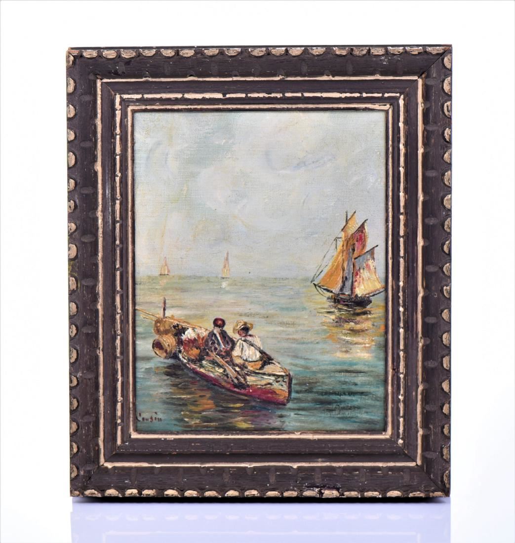 Charles Louis Auguste Cousin (1807 - 1887) French painter known for His Venice Canal and water/ boat scenes. Oil on canvas board. Ca 1885 Believed to be a small test painting for color pallet for a larger painting.