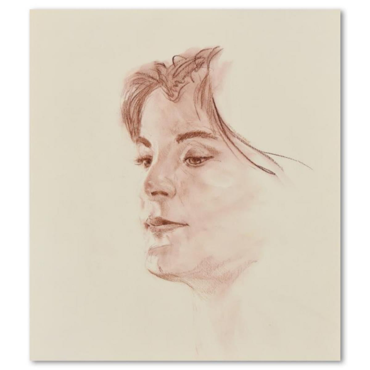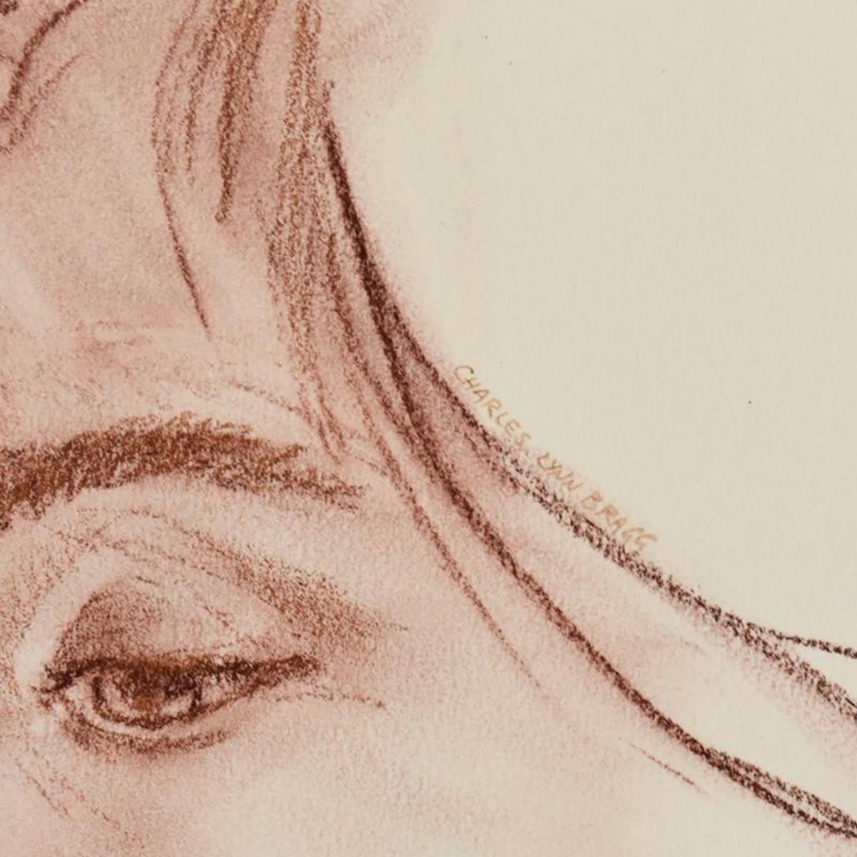 Charles Lynn Bragg, "Contentment" Original Conte Drawing, Hand Signed with Letter of Authenticity