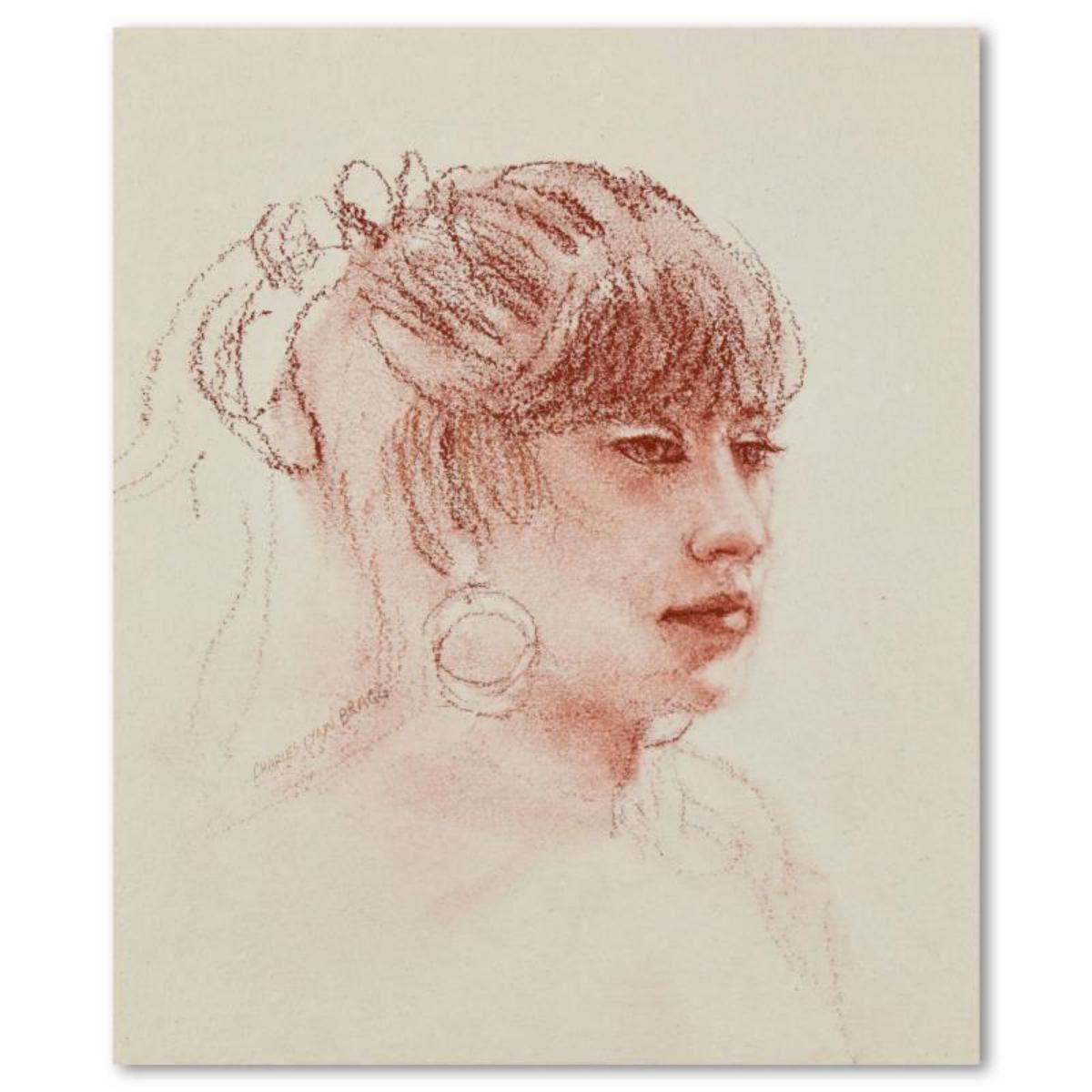 Charles Lynn Bragg, "Lisa" Original Conte Drawing, Hand Signed with Letter of Authenticity