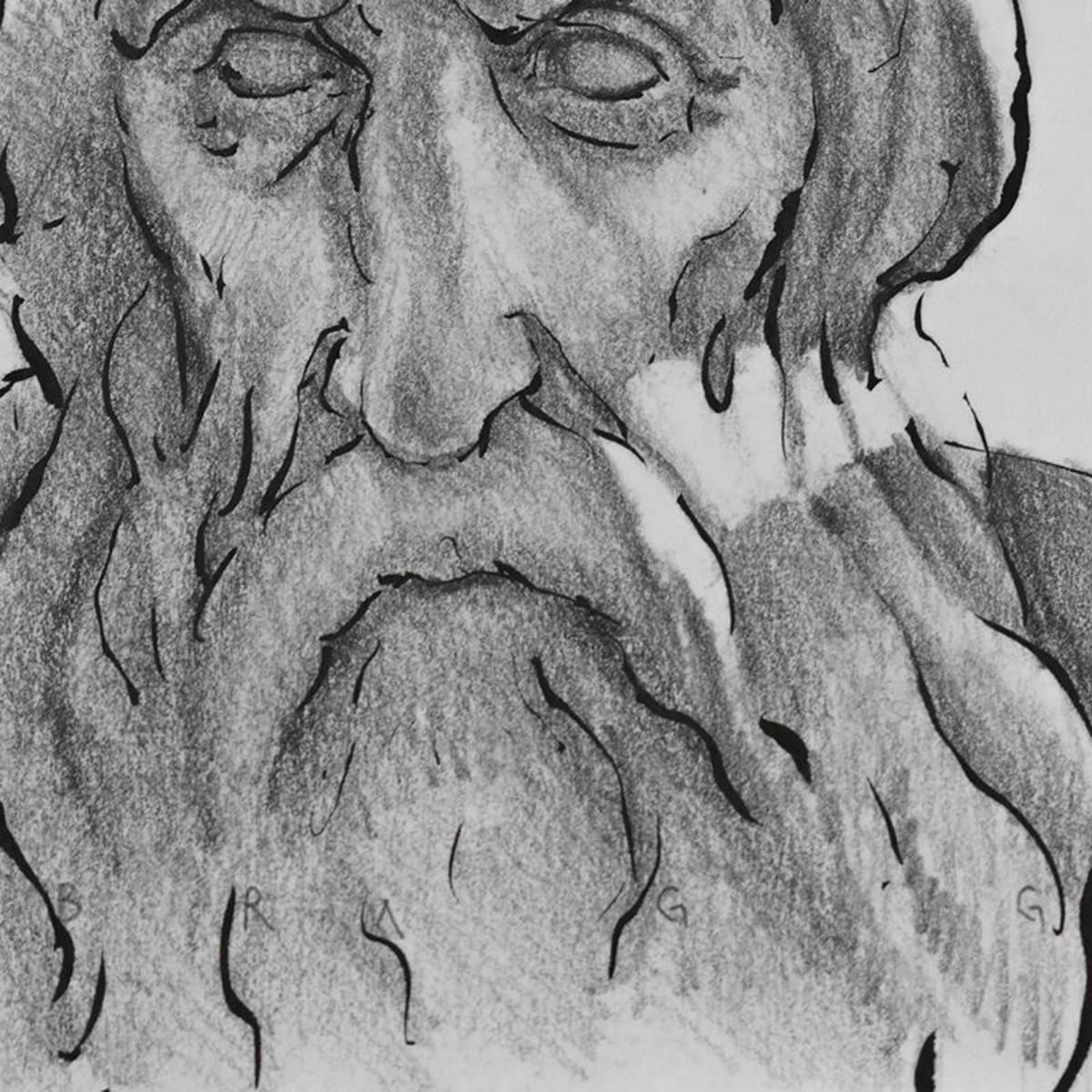 Charles Lynn Bragg, "Philosopher-Poet" Original Ink and Pencil Drawing, Hand Signed with Letter of A