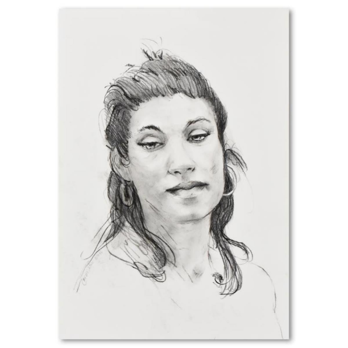 Charles Lynn Bragg, "Susanne" Original Charcoal Drawing on Board, Hand Signed with Letter of Authent