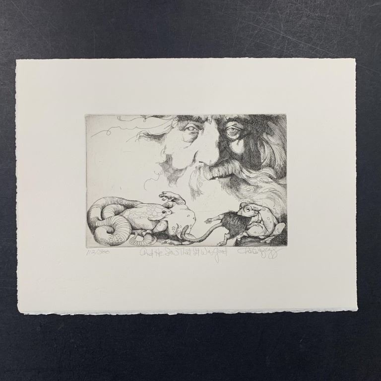 Charles Lynn Bragg's "And He Saw That it Was Good" limited edition print, signed lower right and numbered 112/300 lower left. This piece is of God watching over a snake and frog feeding, and is in excellent condition.