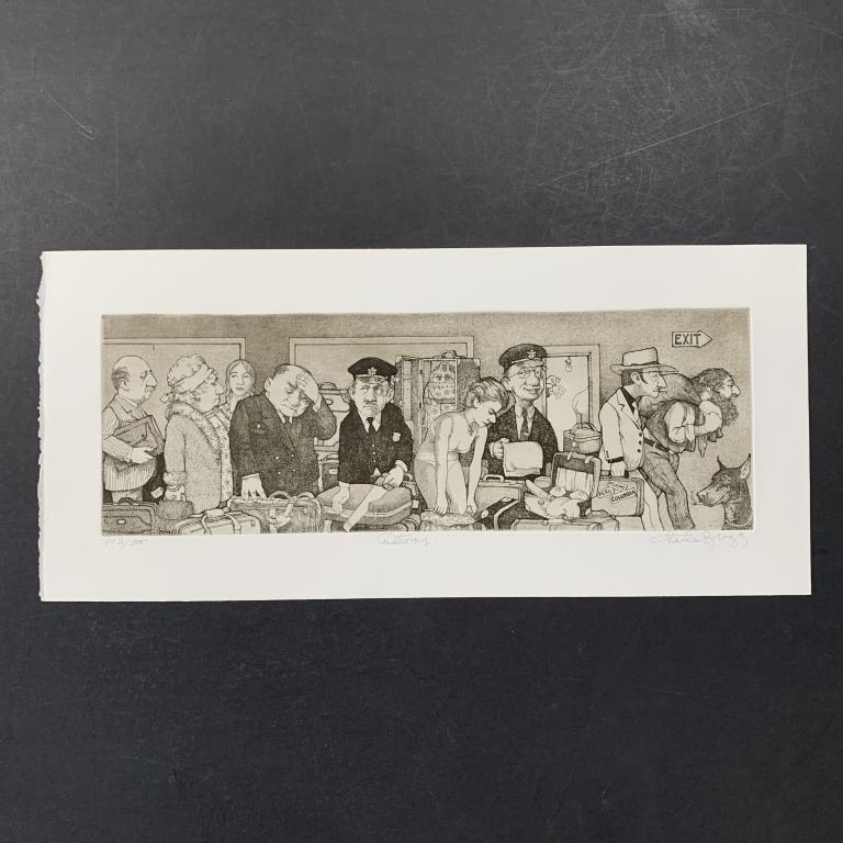 Charles Lynn Bragg's "Customs" limited edition print, signed lower right and numbered 143/300 lower left, and is in excellent condition.
