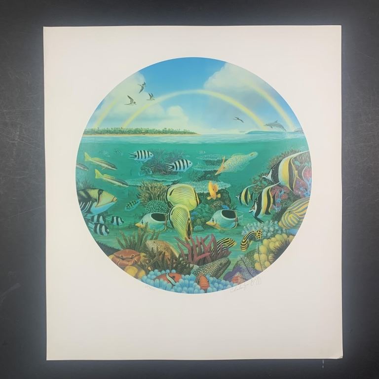 Charles Lynn Bragg's "Rainbow Reef" limited edition print, signed lower right and numbered 295/450 lower left. This piece is an underwater scene with a number of exotic fish, and is in great condition with minor creases upper left and lower right.