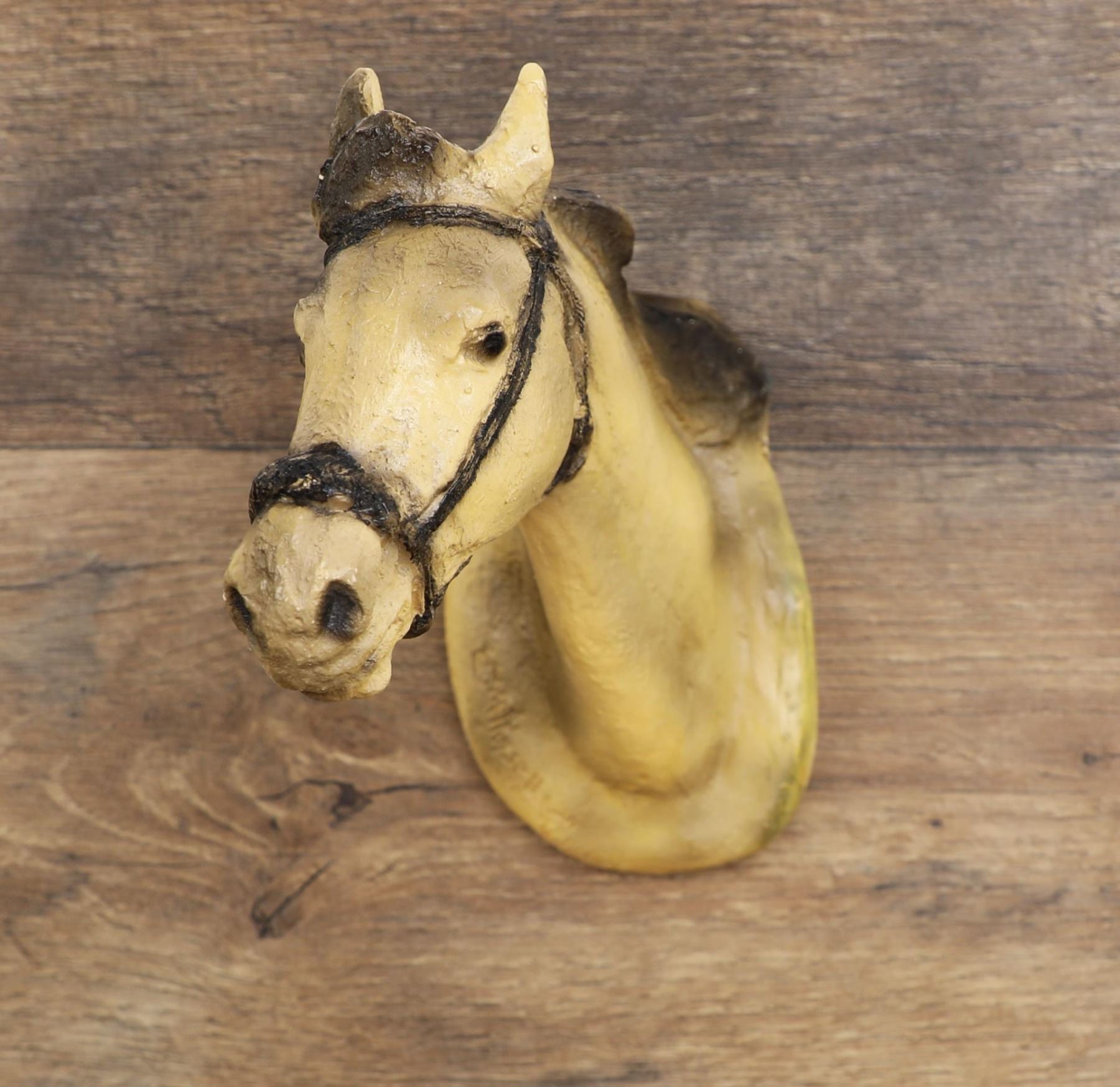 An original plaster Quarterhorse with a hackamore by Charles M Russell. Signed CM Russell with skull. Dated 1923. There was nothing that Charles Russell loved more than making small, painted plaster sculptures which he could give as presents as a true gesture of friendship. This horse was given to Marie Sappington who was the Russell's maid/nanny for many years. Then, to her son Delbert Johnson who Charlie nicknamed "Skookum." Then, to Gene Taconette who was Delbert Johnson's brother-in-law. It is now being publicly offered for sale for the first time, coming from a well known Montana private collector. This model has many names including Horsehead. Measures: 5 1/5" long, 3 3/4" tall, 2" 1/3" wide. Has signs of inpainting and repair as shown. Charles Marion Russell (1864 - 1926) was active/lived in Montana, California, Missouri. Charles Russell is known for Indian-frontier genre painting, sculpture. Charles M. Russell, the nostalgic, held tight memories of a youthful past when the West belonged to God. There was a sense of loss, as poignant as losing a loved one. The specter of what this loss meant loomed over Russell the rest of his life. He was the quintessential nostalgic who grabbed history and married it to idealized memory and imagination. For example, despite Russell never witnessing a buffalo hunt, it became the basis for his most popular and desired art. Nancy Russell explained, "No man can be a painter without imagination." The Romantic art of the nineteenth century was the cornerstone to build the West reimagined for not only Russell, but also his contemporaries and future artists. No Western American artist fought back harder against racism, sexism, and championed environmentalism more than did Charles M. Russell. He thrived on imagining a time when the land was pristine, women were held in high regard, and people of color were the heroes. Paradoxically, the industrialized world championed just the opposite. To many, his life appeared odd—that cowboy hat, that sash, that unruly hair, that folksy talk. He and his art embraced an identity of an exile from a different place and time, which is even more appealing today. In that way, Russell was a visionary who instilled hope in all who saw his art, and his heart. For those reasons and much more, he is the most beloved of all the Western American artists. The Charles M. Russell Museum in Great Falls, Montana; the Charles M. Russell Center for the Study of Art of the American West at the University of Oklahoma in Norman; the Charles M. Russell Center Series on Art and Photography of the American West (books published by the University of Oklahoma University Press); the Charles M. Russell National Wildlife Refuge in Montana; the Russell Riders; and the Russell Skull Society are a testament to that fact. The Cowboy Artists of America have been called "The Sons of Charlie Russell" by art historian B. Byron Price for good reason. Russell was a legendary painter, sculptor, and author. Ever humble and self-effacing, as his fame skyrocketed, he never forgot his cowboy friends. The importance of his life and works is that no one has inspired more new generations of artists. Russell lived in the past and his wife Nancy who was his business manager lived for the future. How could a self-trained artist living in remote Montana become the highest paid artist in America? It’s quite a story. Charles Marion Russell was born on March 19, 1864 in St. Louis, Missouri, a bustling gateway to the West of some 200,000 people. Family history and adventure stories such as the Leatherstocking Tales by James Fenimore Cooper lured Russell to the West. On a crisp March day in 1880 Charles M. Russell jumped off the stagecoach in Helena, Montana Territory and took his turn as the latest easterner seeking western adventure. Accompanying him was Willis L.W. "Pike" Miller, a family acquaintance who acted as Russell’s guardian and gave him his first job in Montana on a sheep ranch Miller owned in the Judith Basin. While Miller was kind enough to chaperone Russell, they soon parted ways because Russell wanted nothing to do with sheepherding. For twelve years Russell and his horse Monte were together on the open range mainly nighthawking—somewhat of a lowly cowboy job of watching the horses overnight while the rest of the cowboys slept—until 1893 when Russell began transitioning from cowboy artist to full-time artist. Only a teenager, Russell was younger than most cowboys who were usually in their early twenties but shared with them the qualities of being gregarious, humble, energetic and adventuresome. Charlie saw the cowboy as the last frontiersman—unlike the colorless overburdened farmer and sheep herder. The period from 1906 to 1910 was one of the most productive and enjoyable times of Charlie’s life, which in no small part was due to the summers at Bull Head Lodge and the mentoring by others such as Philip R. Goodwin who visited him there in 1907 and 1910. Glacier National Park has the type of views that keep postcard publishers in business. The mountains fanned the flames of Charlie Russell’s creative genius. He understood that the mountains don’t need us, we need the mountains. Charlie’s favorite place in the world was the lodge, a log structure nestled among the cedar, fir, and tamarack along the shoreline of beautiful Lake McDonald. The years from 1911 to 1915 were a time of artistic achievement by Russell and promotion by Nancy who was as skilled as any field general with her well planned exhibitions in America, Canada, and England. It would be a grueling pace for the duo, but one that would yield a bountiful harvest of financial and critical success. The cowboy artist was "The West That Had Passed" in solid and photogenic form: strong, handsome, romantic, principled, loyal, productive and real. Nancy’s strategy was the same as any rodeo organizer: open the gates—which she did, and let ‘r buck— which Charlie much obliged. In 1911