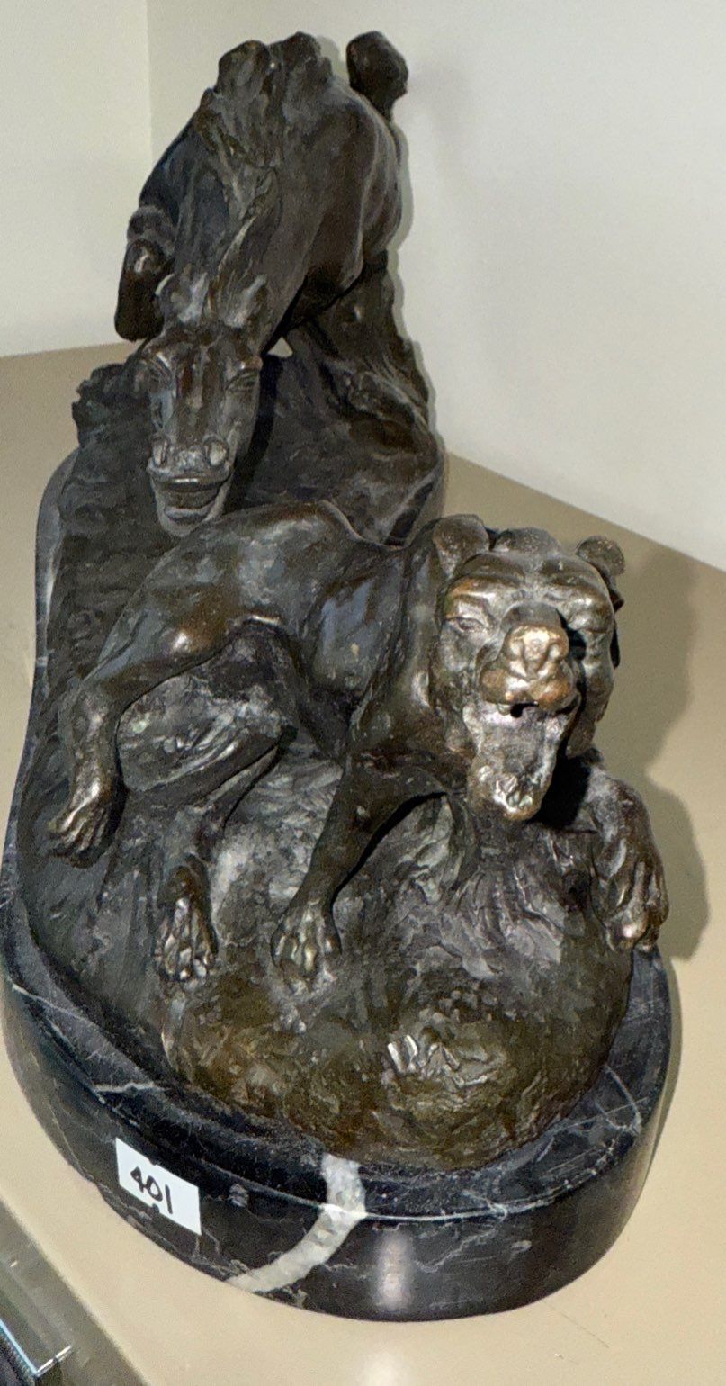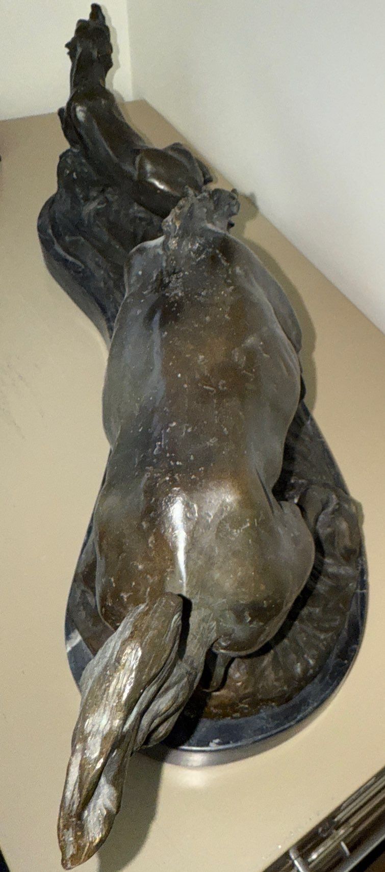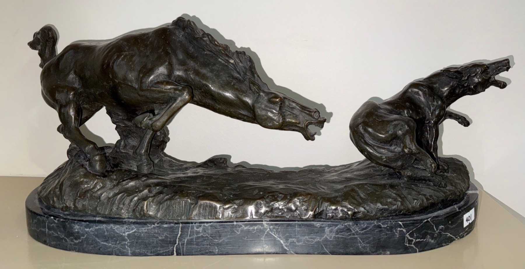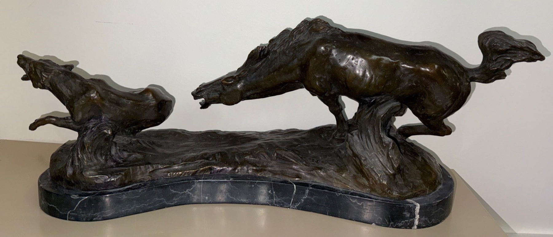 Charles Marion Russell 1926 Horse Attacking Wolf 24L Bronze On Marble
