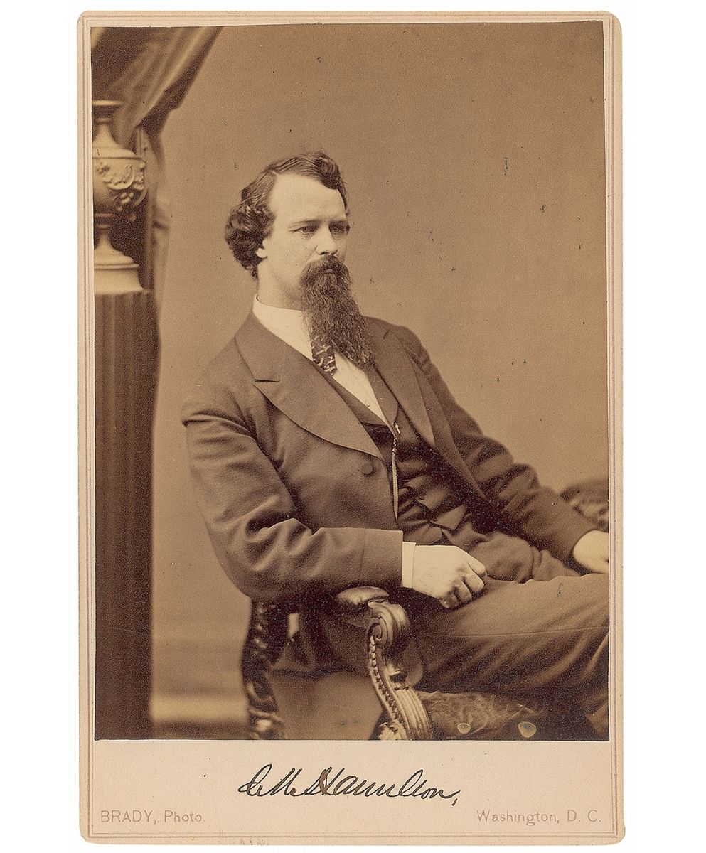 Congressman from Florida who also served in the Union army (1840–1875). Original 4.25 x 6.5 cabinet photo by Brady of Washington, signed in the lower border in black ink, “C. M. Hamilton.” In fine condition, with silvering to dark areas of the image.
