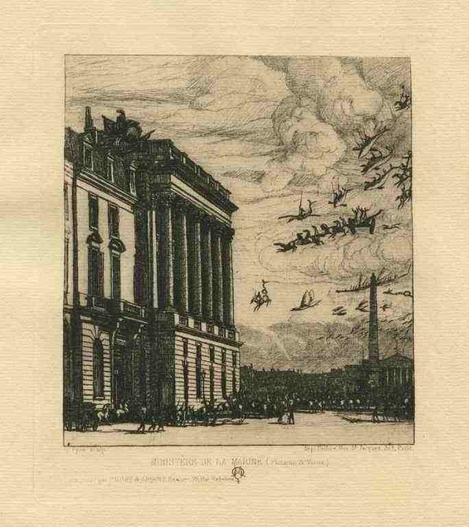 Charles Meryon Original Etching. Executed In 1865; Catalogue Reference: Schneiderman 94 Vii/Vii. This Fanciful And Magnificent Etching Depicts The Headquarters Of The Admiralty In Paris, Under Attack By A Legion Of Flying Creatures. Printed By Delâtre. Plate Size: 6 5/8 X 5 1/2 Inches (168 X 140 Mm); Sheet Size: 10 3/4 X 8 1/2 Inches (272 X 218mm). Very Rare- Professionally Framed & Matted - Comes With Certificate - -