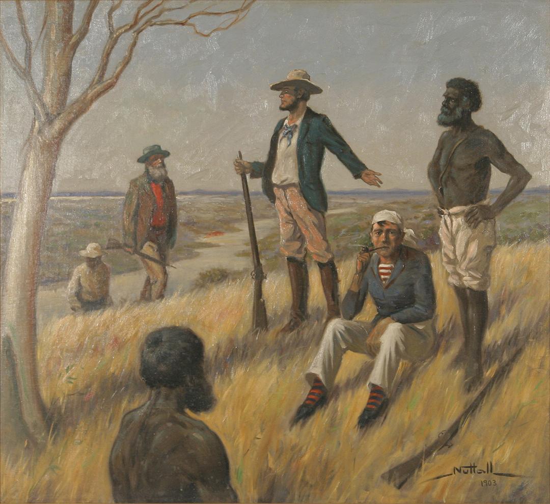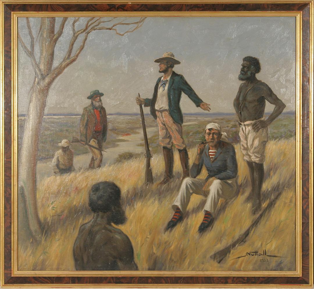 Charles Nuttall (Australia 1872-1934) Oil on Canvas, Aboriginal Scene, 32" x 36", dated 1903, signed lower right.