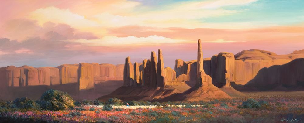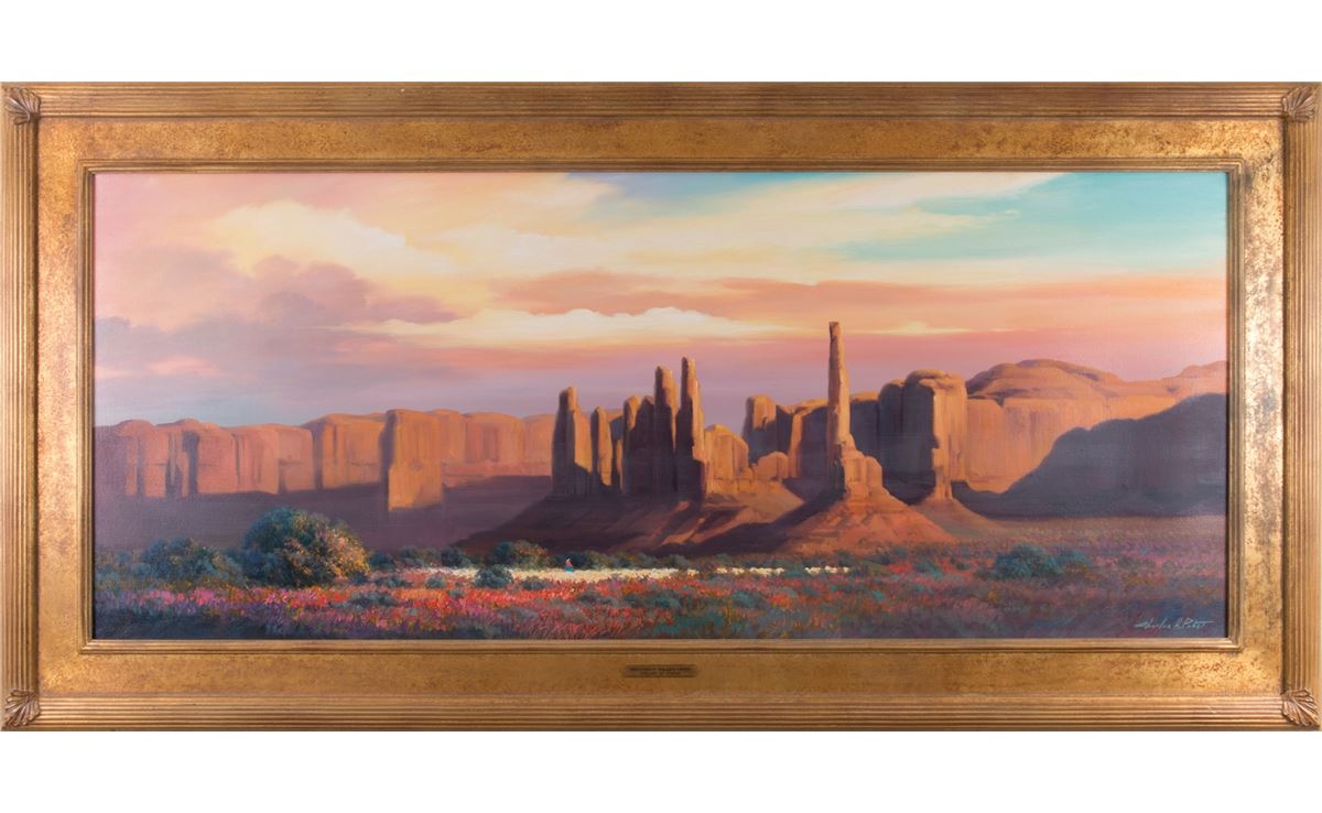 Charles Pabst (1950 - ). Monument Valley Vista. 25" x 60" oil on canvas. Signed lower right.