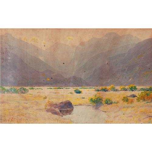 Charles Partridge Adams (American, 1858-1942), "Moraine Park Autumn Afternoon, Estes Park, Colorado", c. 1910; watercolor and gouache/ paper, 9" x 14" , signed, imperfections. Colorado painter. Adams moved to Denver in 1876 for health reasons. His work