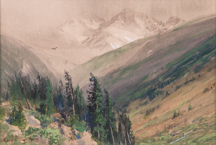 Charles Partridge Adams (1858-1942). High in the Rockies. 6 ½" x 9 ½" watercolor. Signed lower left.