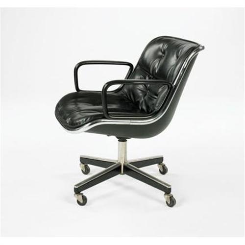 Signed with decal manufacturer's label to underside: [Knoll International].<BR><BR>Condition: Abrasions to upper edges on metal framing band around back rest, concentrated in four distinct areas. Two closed tears to leading edge of upholstery on seat requiring minor restoration. Overall very good vintage condition.