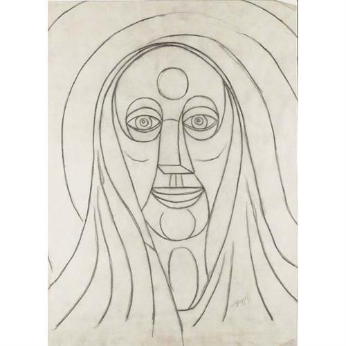 5214 Charles Ragland Bunnell (1897-1968) Pencil Jesus From the Charles R. Bunnell Estate Signed lower right 23" x 16"