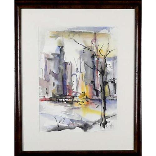7672 Charles Ragland Bunnell (1897-1968) Watercolor City Scape Signed lower right 1952 14 1/2" x 11"