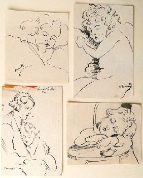 , Charles Ragland Bunnell (1897-1968) 4 Pen/ink Drawings, Signed, Various Sizes, 4 1/2" X 3 1/2", (7658)