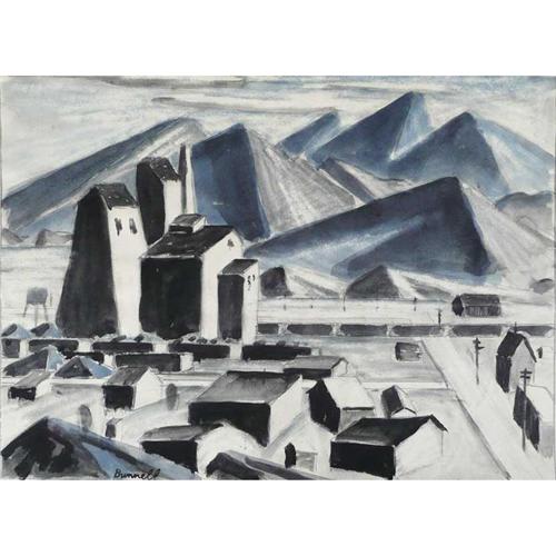 Charles Ragland Bunnell (1897-1968) Broadmoor Art Academy, Watercolor, Mining Town, Blue/Black, 8 1/2" x 11", Signed lower right.
