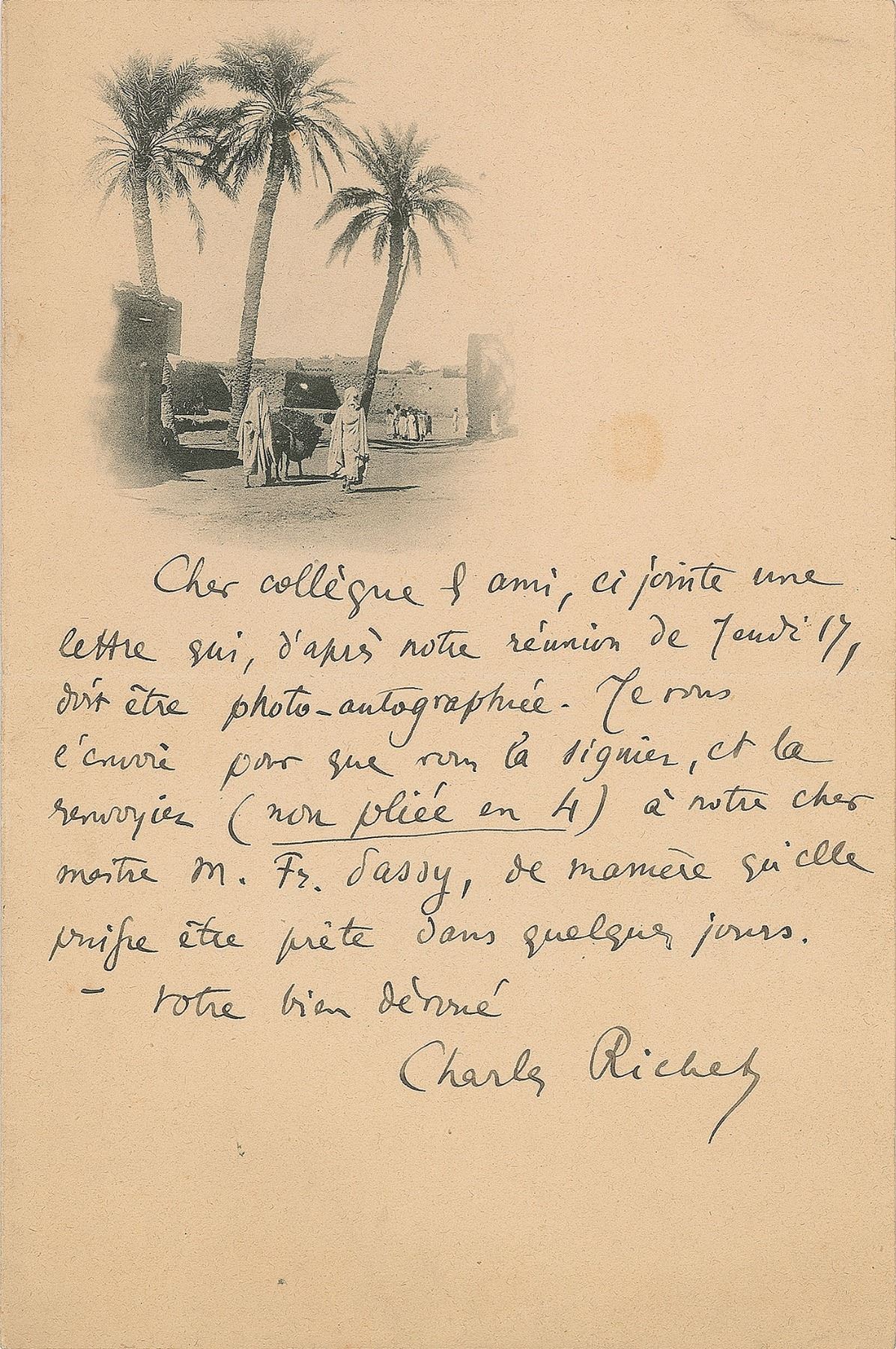 French physiologist (1850–1935) who won the 1913 Nobel Prize in Medicine for his work in anaphylaxis, which led to advances in the treatment of allergies. ALS in French, one page, 5 x 7.75, exotic letterhead, no date. Untranslated letter to a friend and colleague referencing a “photo-autographee.” In fine condition, with one light stain.