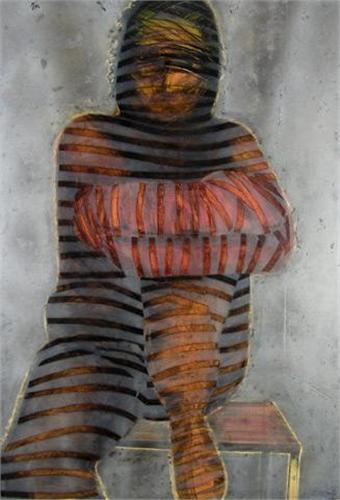 [Canadian b. 1946] UNTITLED (FIGURE) Mixed media on paper 44 x 30.5 ins. Signed