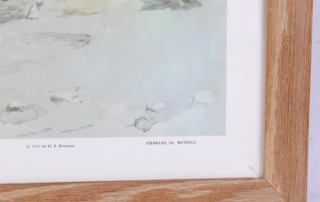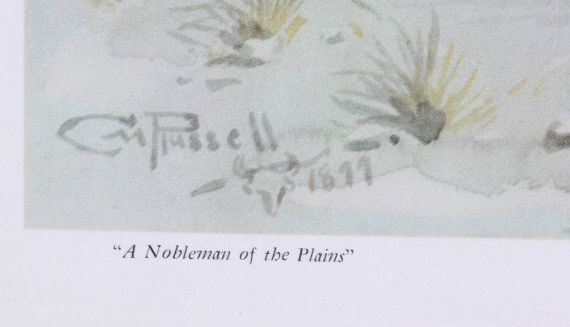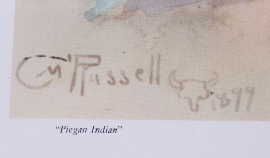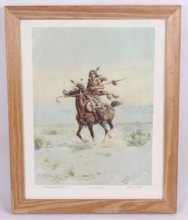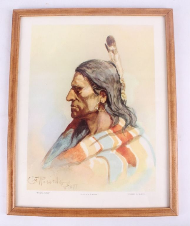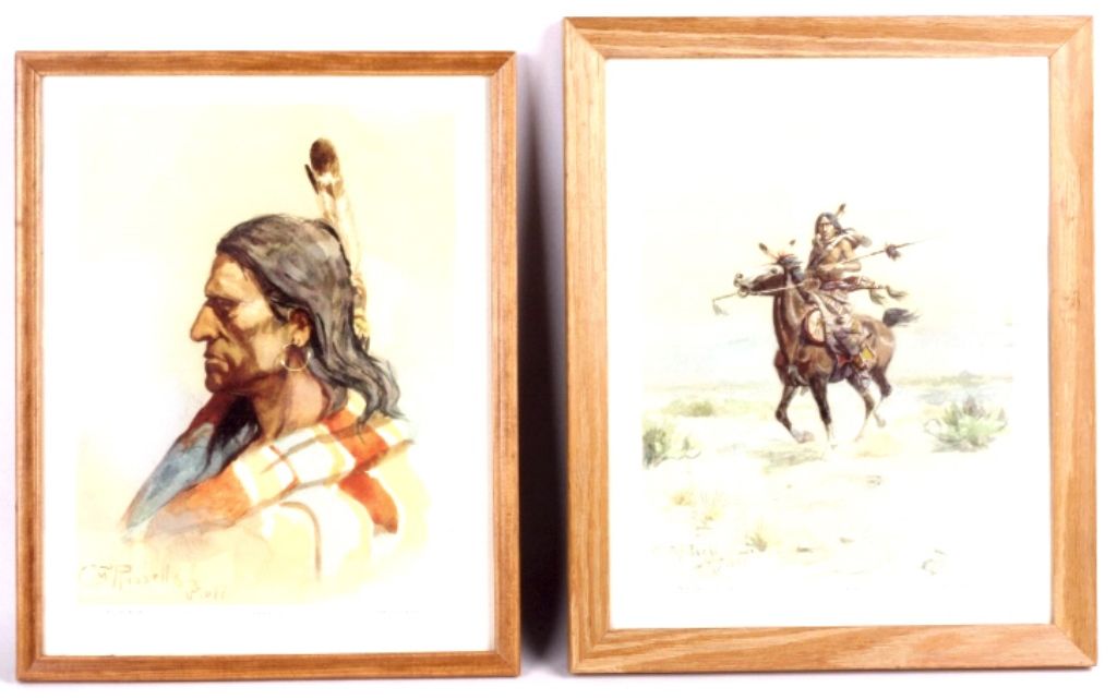 This lot features 2 framed C.M. Russell prints. One is titled "Piegan Indian" and the other is "A nobleman of the Plains". Russell is the most well known western artists of his time. These prints were produced in 1953.The smallerone measures 12" x15" and the largerone is 12.75" x 15".