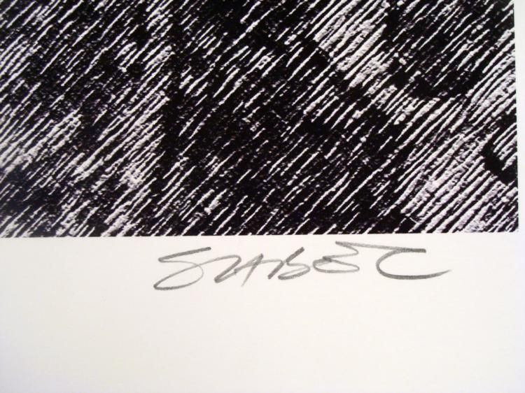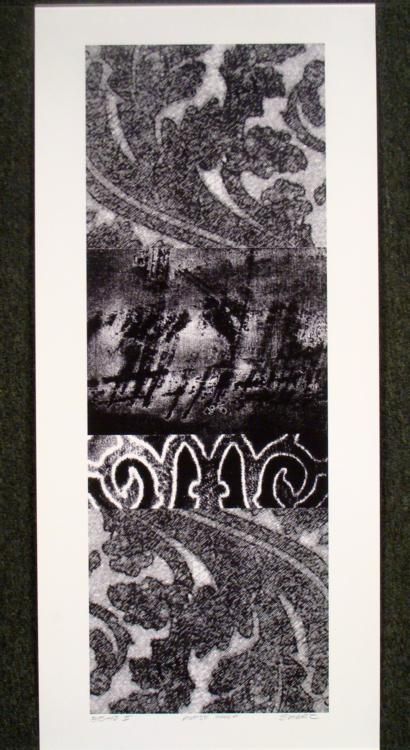 Mirror images of ancient looking patterns appear in this black and white art print, full of rich textures.Artist: Charles SabecSignature: In pencil, lower rightTitle: "Echo I"Medium: Print on paperEdition: Artist ProofSheet size: 20 x 44 inchesCondition: ExcellentBiography:Charles Sabec is an artist of many mediums, including painting, printmaking, ceramics, watercolors, and digital art. He is also the founder and President of his own publishing studio called Studio Eight Fine Art Publishing. His work can be found in many museums and private collections around the world.