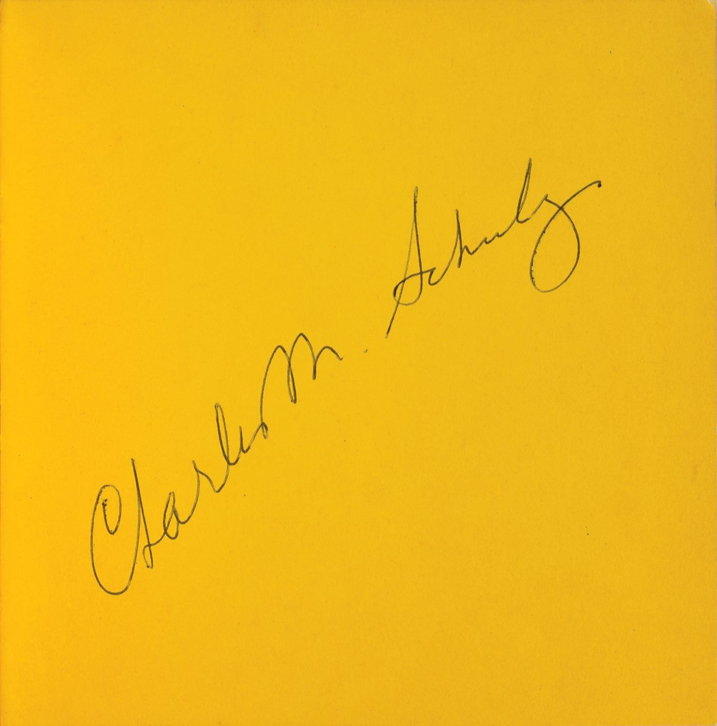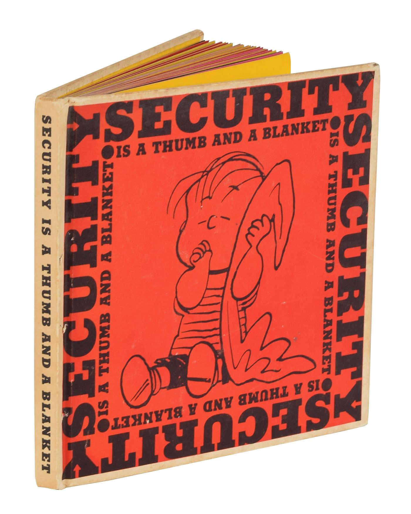 Signed book: Security Is a Thumb and a Blanket. First edition. California: Determined Productions, 1963. Hardcover, 5.75 x 5.75. Signed on the first free end page in black ballpoint, "Charles M. Schulz." In fine condition, with light soiling to the covers and a few small dings to the hinge.