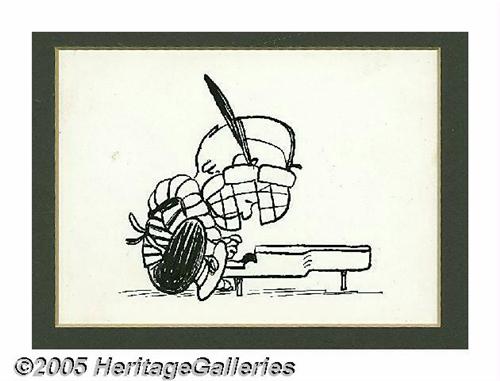 <B>Charles Schulz - "You Can Do It, Charlie Brown" Schroeder Illustration Original Art (Holt, Rinehart and Winston, 1963).</B></I> A boy for all seasons, Schroeder doubles as a baseball catcher <I>and</B></I> a piano prodigy! Charles Schulz created this superb drawing of Schroeder for a spot illustration on the half-title page for <B>You Can Do It, Charlie Brown.</B></I> The image area of this drawing measures 6.5" x 6.5", and the piece is in Excellent condition.