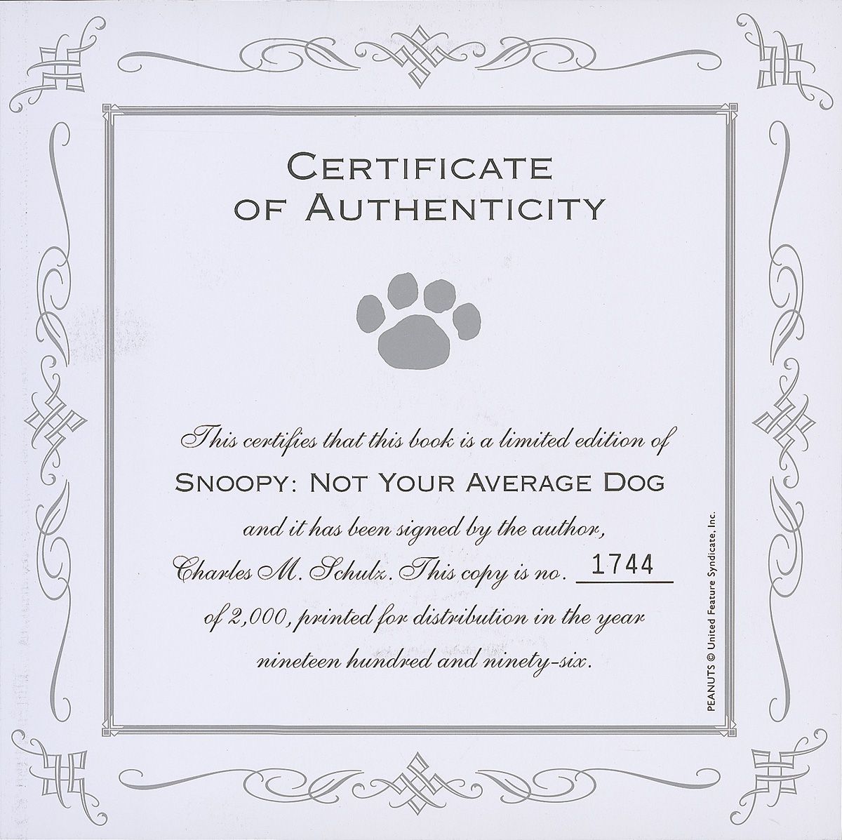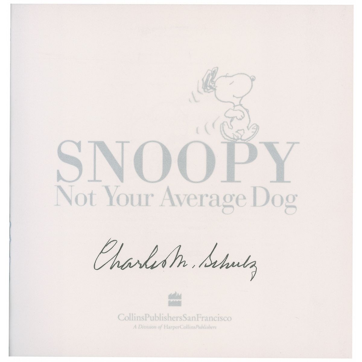 Signed book: Snoopy: Not Your Average Dog. Limited first edition of 2,000 copies (this copy No. 1744). San Francisco: Collins Publishers, 1996. Hardcover with slipcase, 9.25 x 9.25, 78 pages. Signed in black felt tip on a front blank. The original 3-D glasses that accompanied the book are included. In fine condition, with some light rubbing to covers and slipcase.