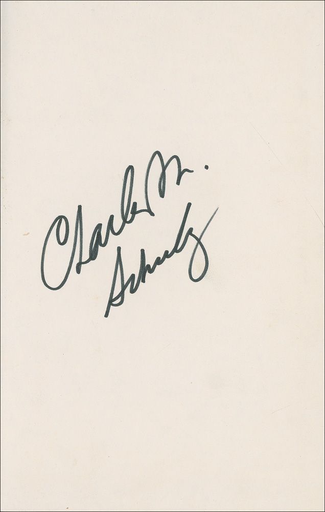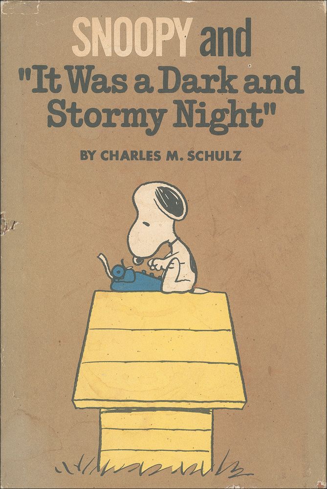 Signed book: Snoopy and ‘It Was a Dark and Stormy Night.’ First edition. NY: Holt, Rinehart and Winston, 1971. Hardcover with dustjacket, 5.5 x 8.25. Signed in black felt tip on the first free end page, “Charles M. Schulz.” Owner’s name written on half-title page, scattered light toning, fading, wear, and small tears to dustjacket, and some chipping and surface loss to spine, otherwise fine condition.