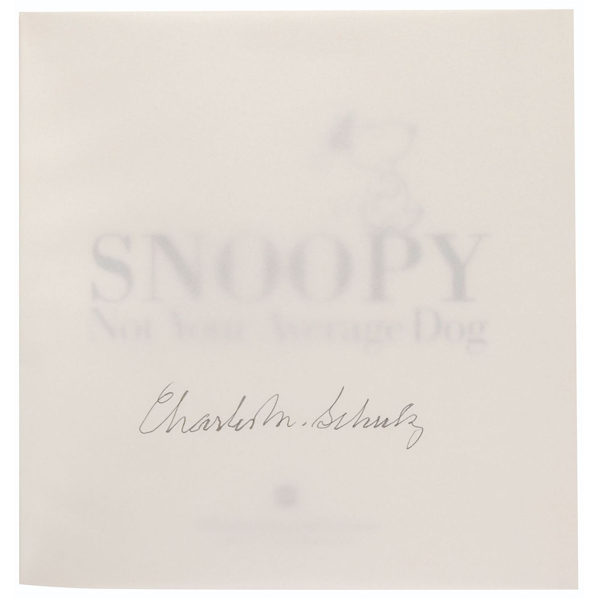 Signed book: Snoopy: Not Your Average Dog. Limited first edition of 2,000 copies (this being copy No. 1106). San Francisco: Collins Publishers, 1996. Hardcover with slipcase, 9.25 x 9.25, 78 pages. Signed in black felt tip on a front blank page. The original 3-D glasses that accompanied the book are included. Autographic condition: very fine. Book condition: NF/None, in VG+ slipcase.