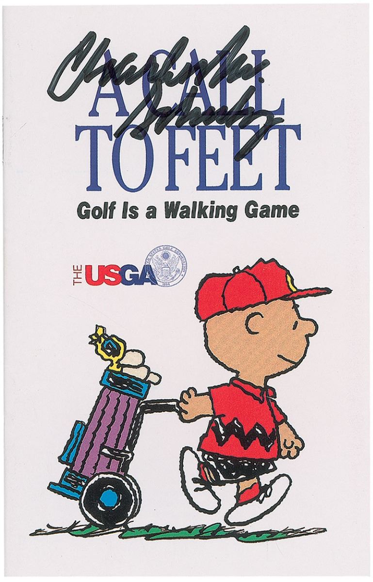 USGA booklet entitled “A Call to Feet, Golf Is a Walking Game,” 4 x 6.25, 16 pages. Signed on the front cover in black felt tip, “Charles M. Schulz.” In fine condition.