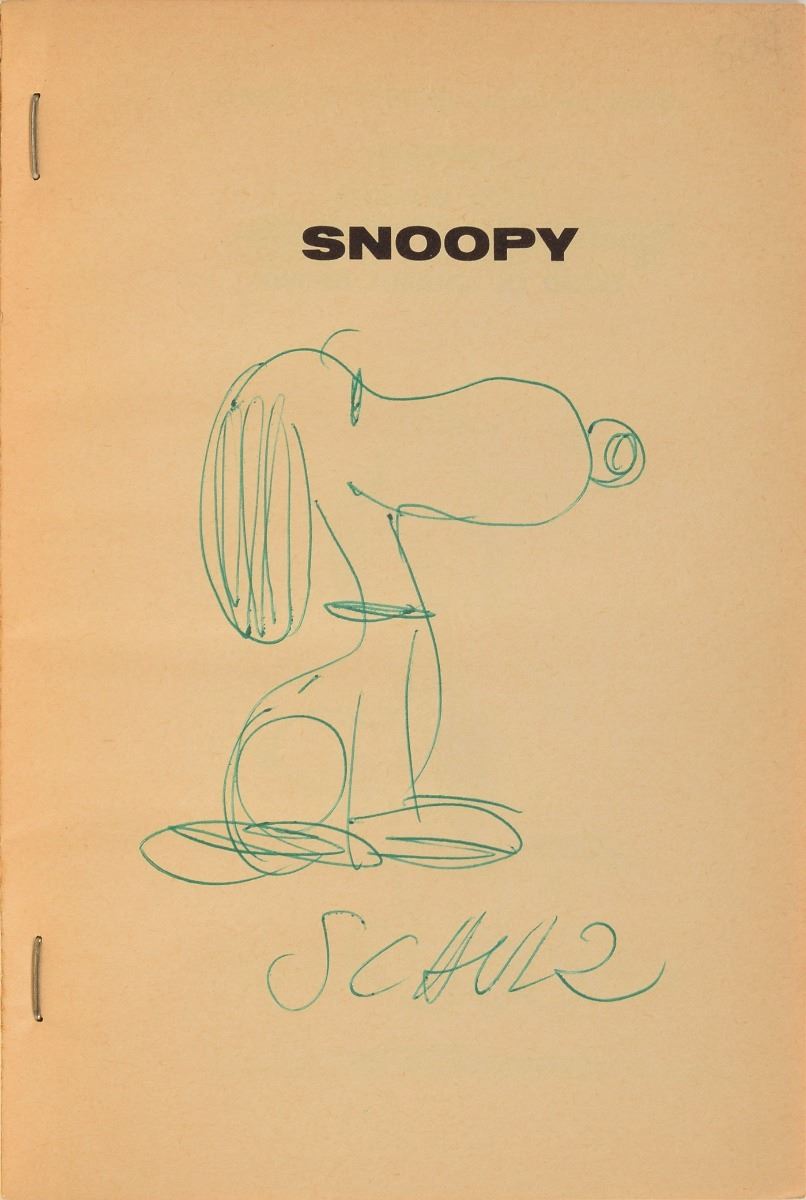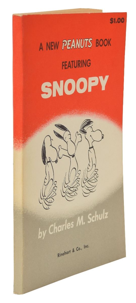 Signed book: Snoopy. NY: Rinehart & Co., Inc., 1958. Softcover, 5.25 x 8. Attractively signed on the half-title page in green ballpoint, "Schulz," who adds a wonderful full-length sketch of Snoopy obediently sitting in profile. In fine condition.