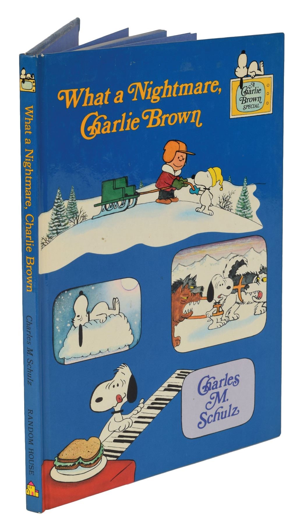 Signed book: What a Nightmare, Charlie Brown. First edition. NY: Random House, 1978. Hardcover, 6.75 x 9.5, 42 pages. Signed and inscribed on the first free end page in blue felt tip, "For Kelley & Shirley—Charles M. Schulz." In fine condition.