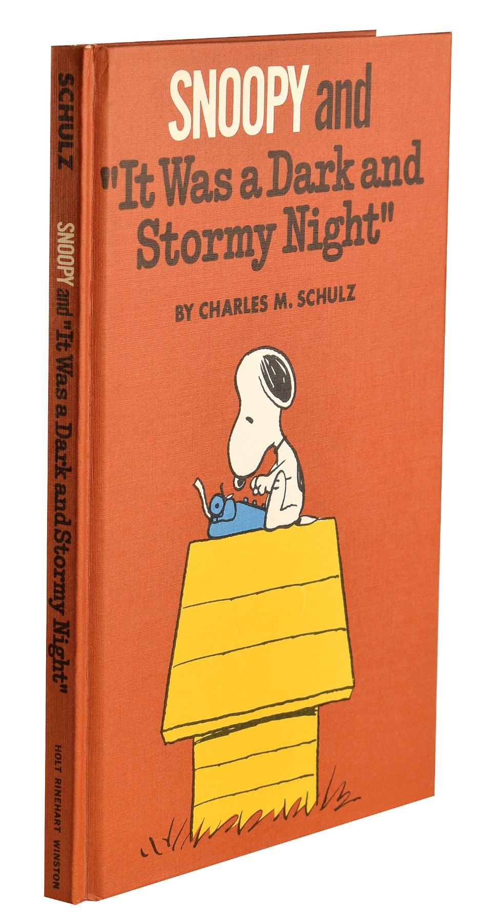 Signed book: Snoopy and 'It Was a Dark and Stormy Night.' First edition. NY: Holt, Rinehart and Winston, 1971. Hardcover with dust jacket, 5.5 x 8.25. Prominently signed on the first free end page in black felt tip, "Charles M. Schulz." Autographic condition: fine. Book condition: VG+/VG, with some insect damage to the dust jacket's spine and flap edges.