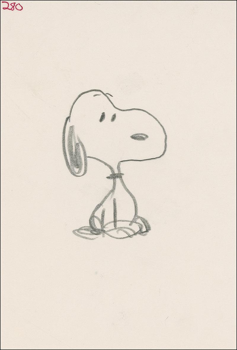 Original unsigned pencil full-length sketch of Snoopy sitting on an off-white 4 x 6 sheet. In fine condition, with a small ink notation to top corner. This drawing was originally done for an advertising agency in San Francisco around 1970, which handled an account for Butternut Bread, and was originally acquired from an agency employee. Pre-certified PSA/DNA and RRAuction COA.