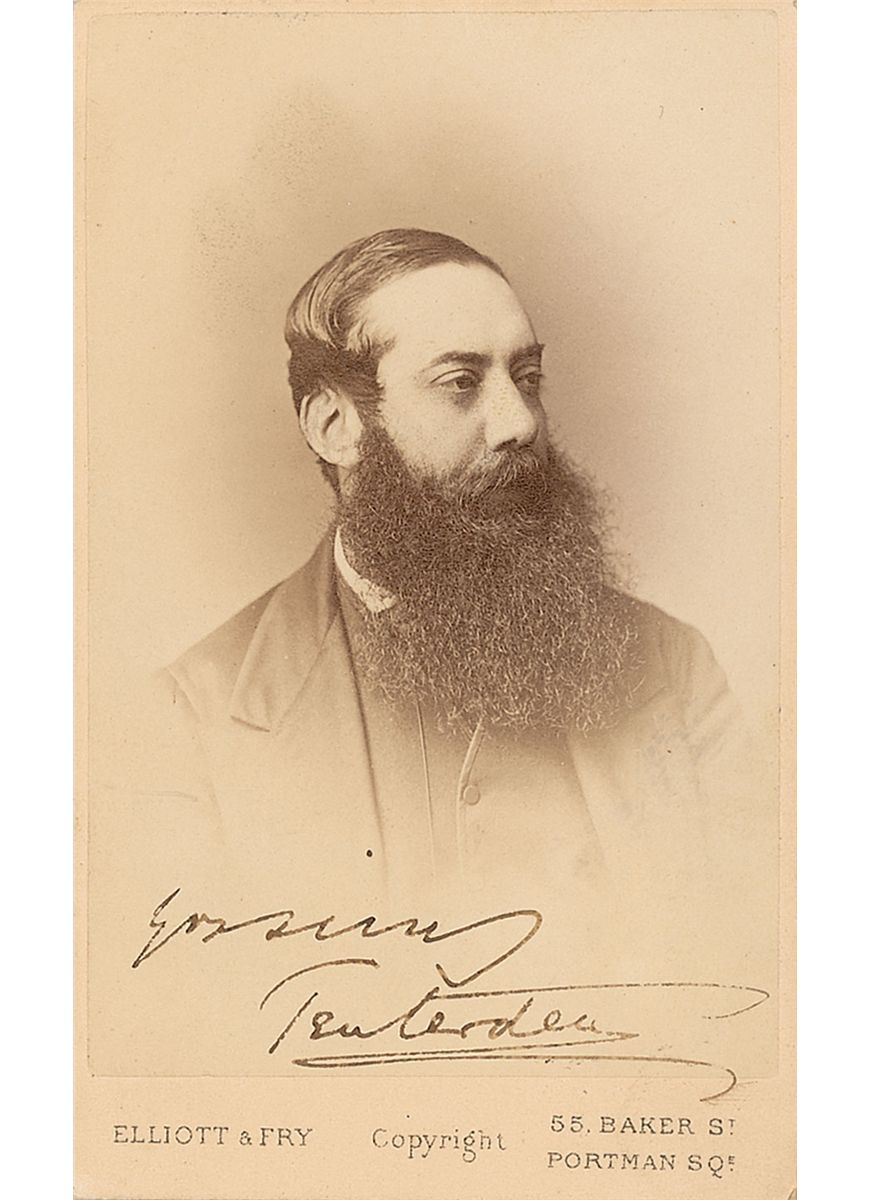 British diplomat and 3rd Baron Tenterden (1834–1882). Original 2.5 x 4 carte-de-visite bust portrait by Elliott & Fry of London, signed at the bottom of the image in black ink, “Yrs siny, Tenterden.” In fine condition, with various notations to reverse.
