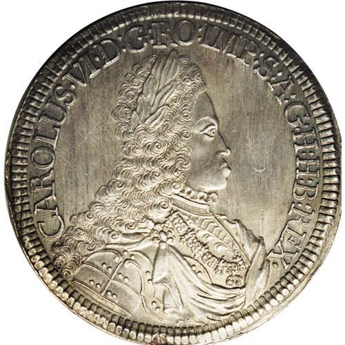 <B>Charles VI 2 Taler ND (circa 1715) Hall, </B></I>KM696, D-1049, Choice AU, light silvery blue toning, some very faint flan striations.