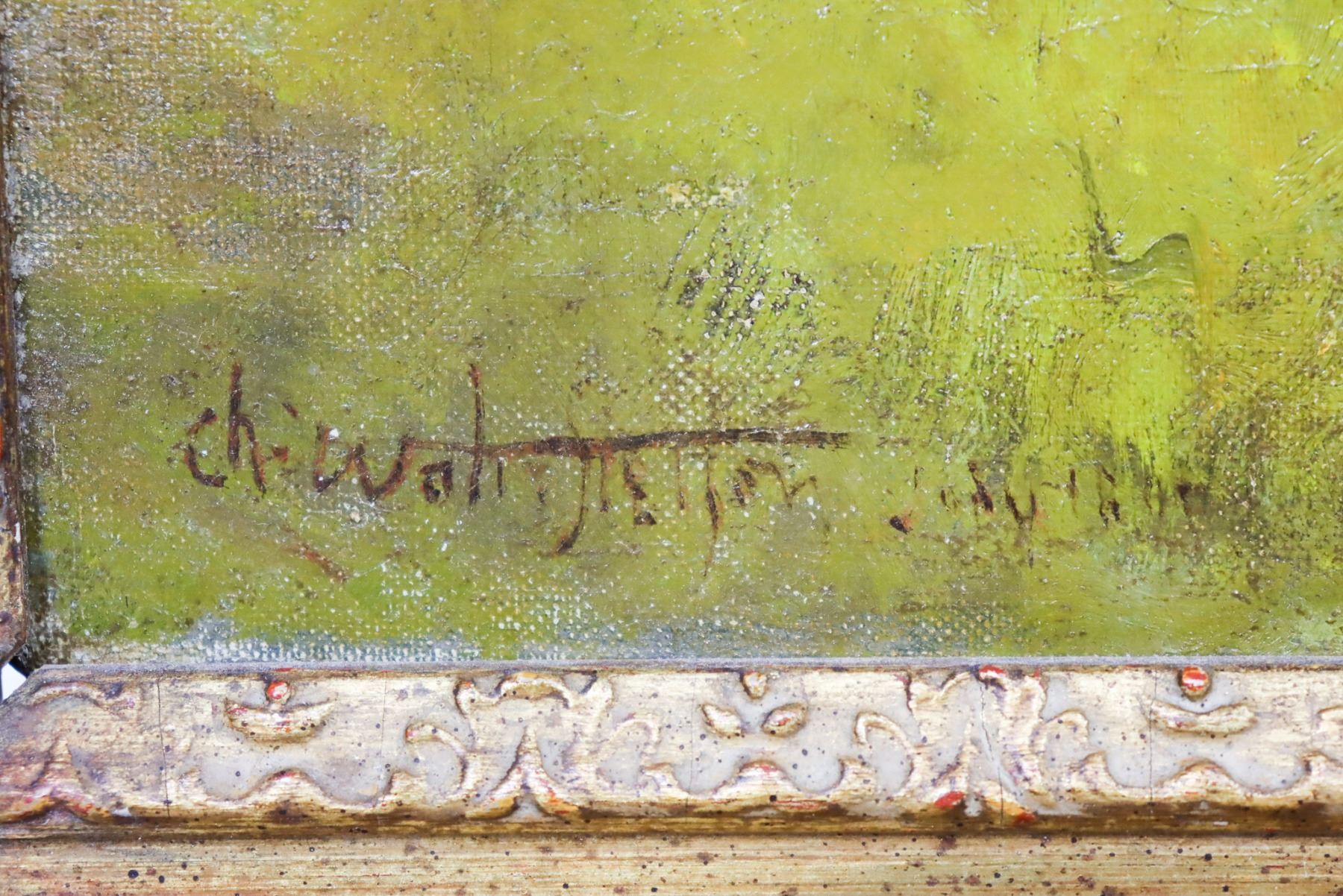 Signed lower right and in verso. An etcher and painter in rich palette of landscapes, portraits and nudes, Charles Stetson became known for his Symbolist paintings, like those that were popular in Europe, of idyllic figures in shadowy, outdoor settings.
