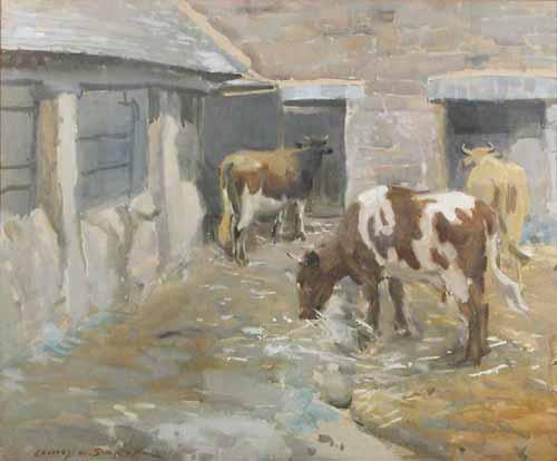Charles Walther Simpson (1885-1971) watercolour, Cattle in a farmyard, signed and dated 1918, 19 x 23.5 ins. £500-700