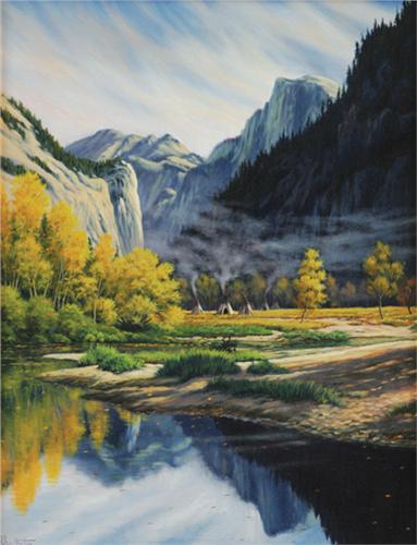 Charles White. Indian Summer, '99. 18" x 14" oil on canvas. Signed lower left. (est $500-1,000)