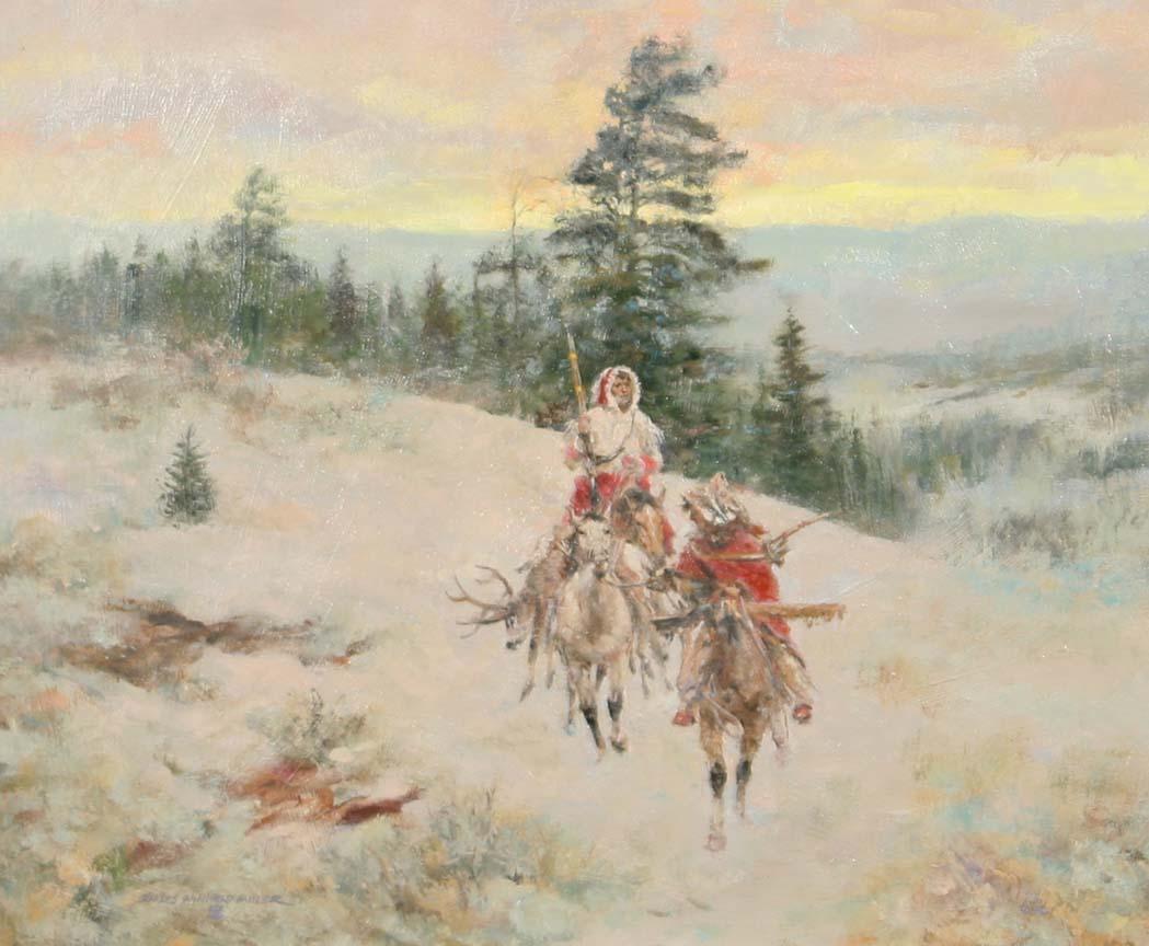 Charles Winfield Miller (1922-1995). Home From The Hill. 20" x 24" oil on canvas. Signed lower left. (est $1,000-2,000). For condition reports please visit: www.auctioninsantafe.com/cr2011.pdf