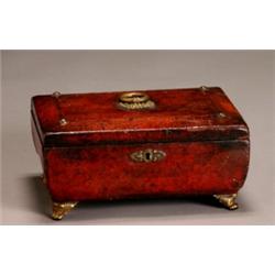 Charles X Gilt Metal Mounted Red Leather Box, Circa 1825, Raised on volute and animal paw fee...