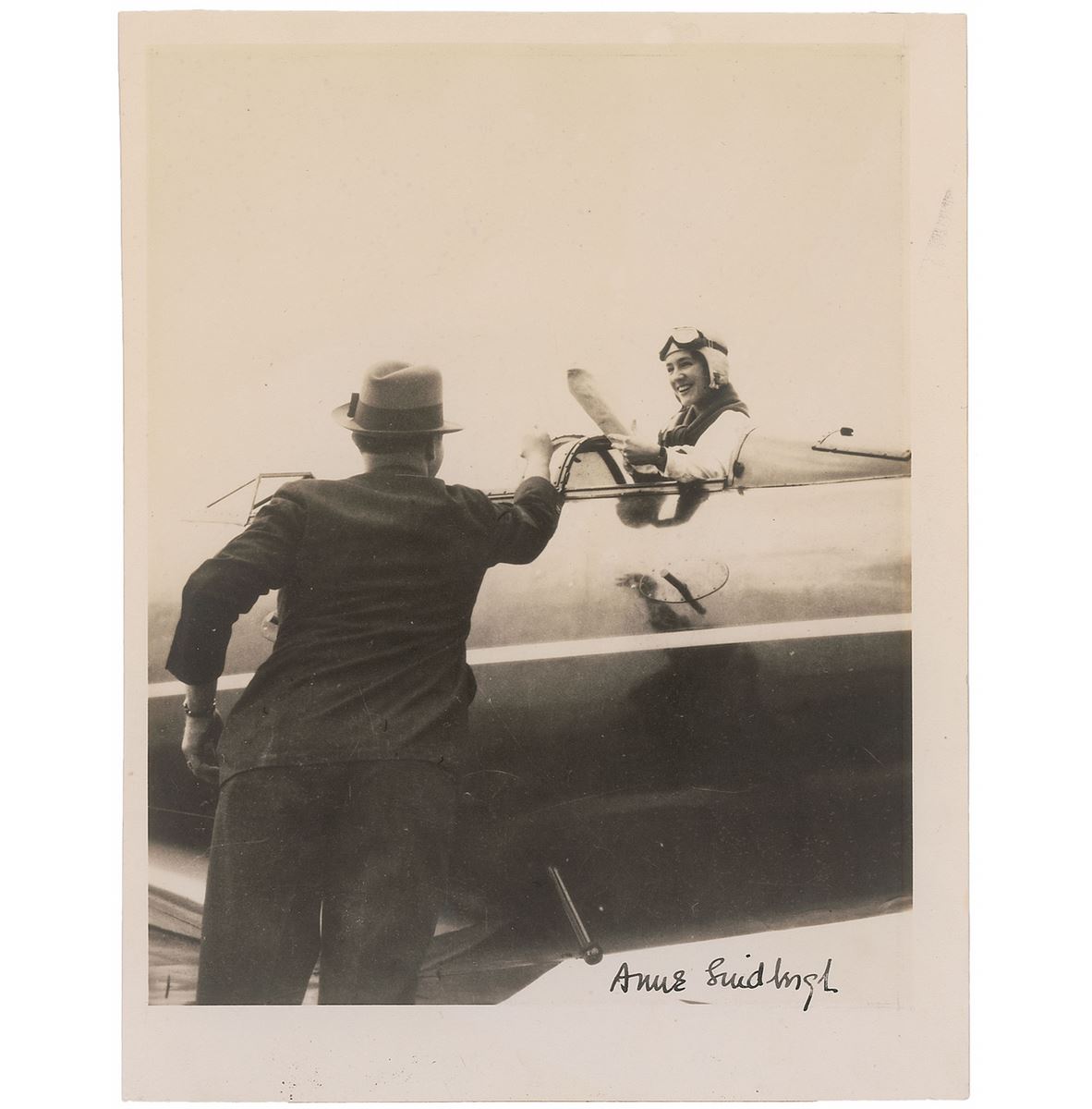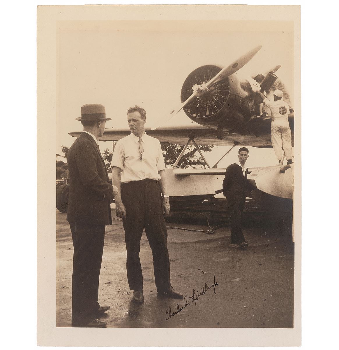 Two fabulous matte-finish 7.75 x 9.75 candid photos depicting the pioneering couple with their Lockheed Model 8 Sirius, individually signed in fountain pen, “Charles A. Lindbergh” and “Anne Lindbergh.” In overall fine condition, with uniformly trimmed edges. During their 1933 trip to Greenland, this famous plane was named ‘Tingmissartoq’ by an Inuit boy, meaning ‘one who flies like a big bird.’