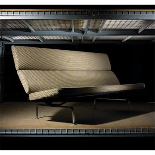 Signed with disc manufacturer's label to underside: [Herman Miller Inc. Zeeland Mich.].<BR><BR>Condition: Original upholstery has small area of wear to backrest measuring approximately 3 x 3 inches. Upholstered seat has minor fraying along bottom edge to one side. Chromed frame shows minor surface scratches, consistent with use. Overall excellent condition.