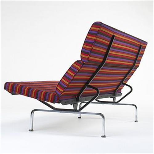 Charles and Ray Eames Compact sofa Herman Miller USA, c. 1954 upholstery, chrome-plated and enameled steel 71 w x 29 d x 36 h inches This compact sofa features Alexander Girard Jacobs Coat 093 upholstery. Literature: <i>Eames Design</i>, Neuhart, Neuhart and Eames, pg. 191