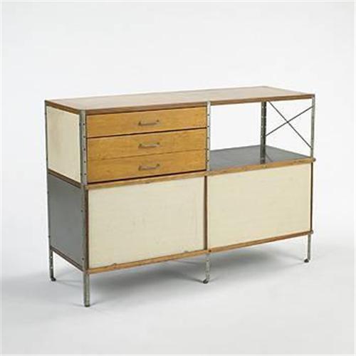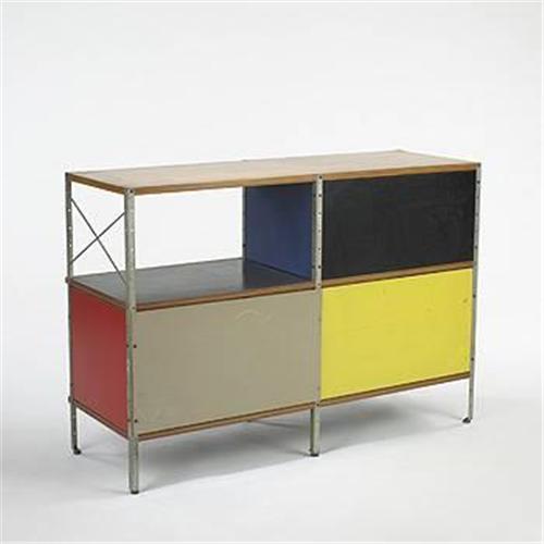 Charles and Ray Eames ESU 200 Herman Miller USA, c. 1950 plywood, painted masonite, zinc 47"w x 17"d x 33"h Signed with decal label.